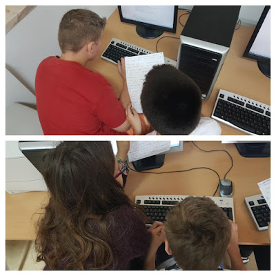 Nesta semana, em mais uma sessão do Projeto "Eu ouço, eu conto" tivemos trabalho em parceria. Alunos com mais facilidades a ajudarem alunos com menos destreza na arte de escrever num computador. Juntos somos mais fortes!