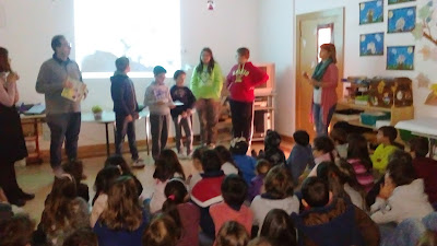 Na quarta-feira foi a vez de apresentarmos o trabalho realizado, ao longo do primeiro período, no âmbito do projeto "Eu ouço, eu conto". Os cinco alunos envolvidos apresentaram a história "Não gosto de Salada" de Tony Ross, às turmas do Professor Rui, da Professora Micaela e da Professora Ana Teresa.